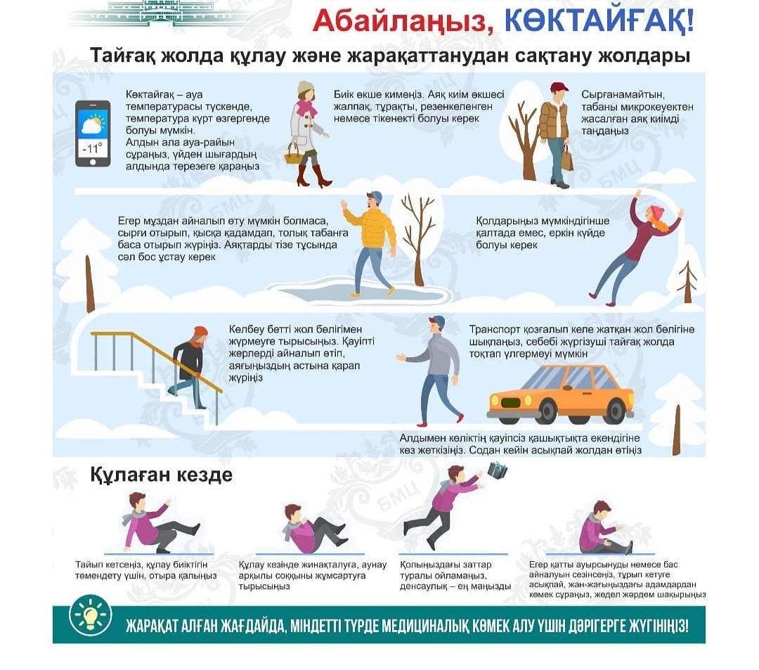 Көктайғақ кезінде жарақат алғандар, буыны шыққан және cүек сындырған жаяу жүргіншілер саны 2 немесе одан да көп есеге артады.