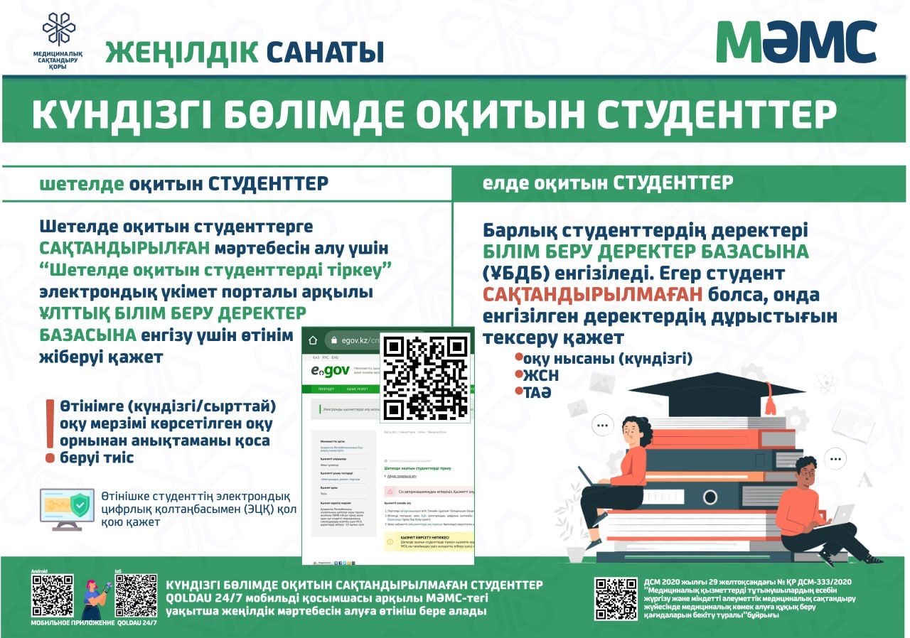 ▶️Сондай-ақ, Электронды үкіметтің egov.kz сайтындағы «Денсаулық сақтау» бөлімінде «Міндетті әлеуметтік медициналық сақтандыру жүйесіне медициналық көрсетілетін қызметті тұтынушы ретінде қатысу туралы және аударымдардың және (немесе) жарналардың аударылған сомалары туралы ақпарат ұсыну» мемлекеттік қызметі арқылы медициналық сақтандыру жүйесіндегі өз мәртебеңізді тексеруге және жүргізілген төлемдер туралы ақпарат алуға болады.