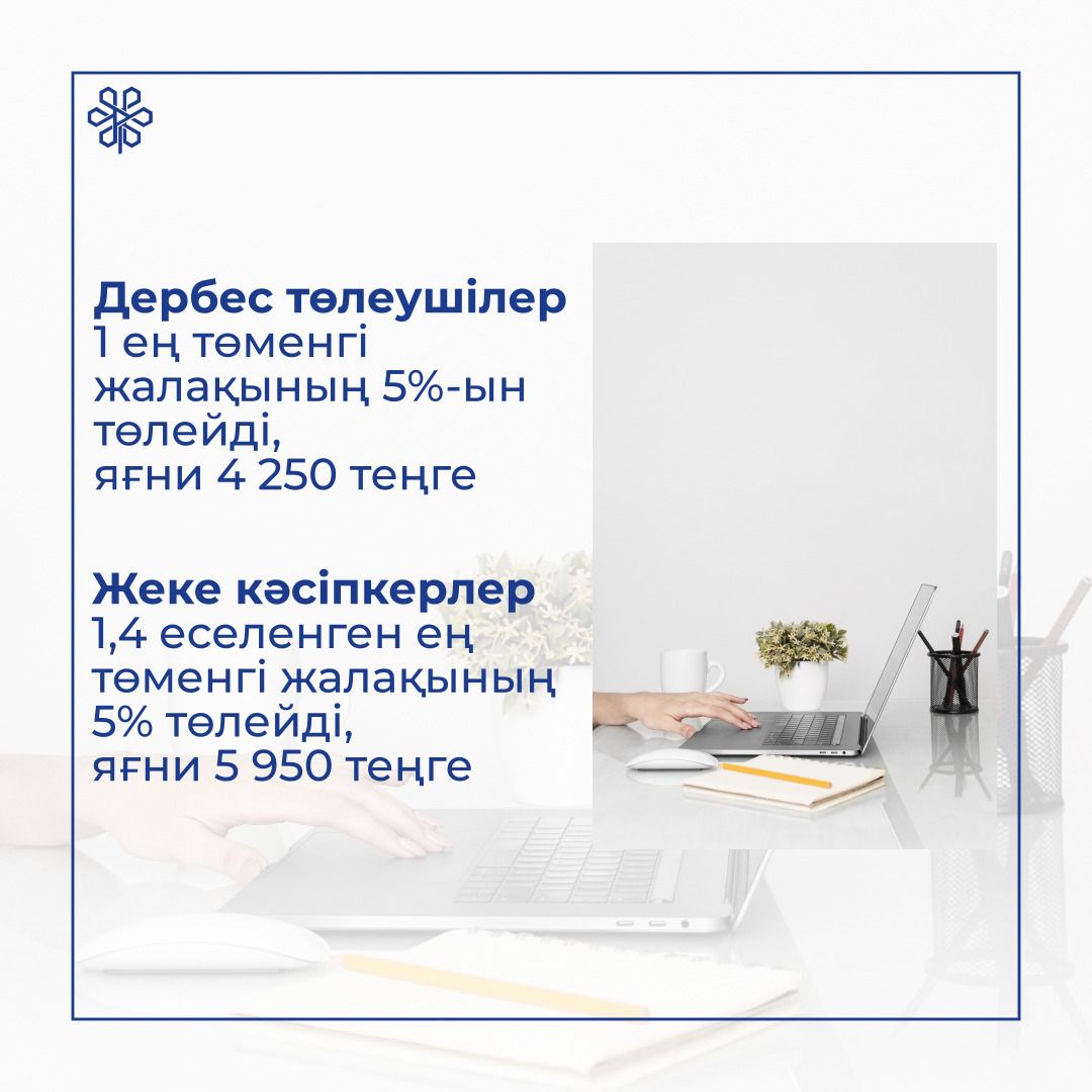 ↪️ Дербес төлеушілер 1 ең төменгі жалақының 5%-ын төлейді, яғни 4️⃣ 2️⃣5️⃣0️⃣ теңге