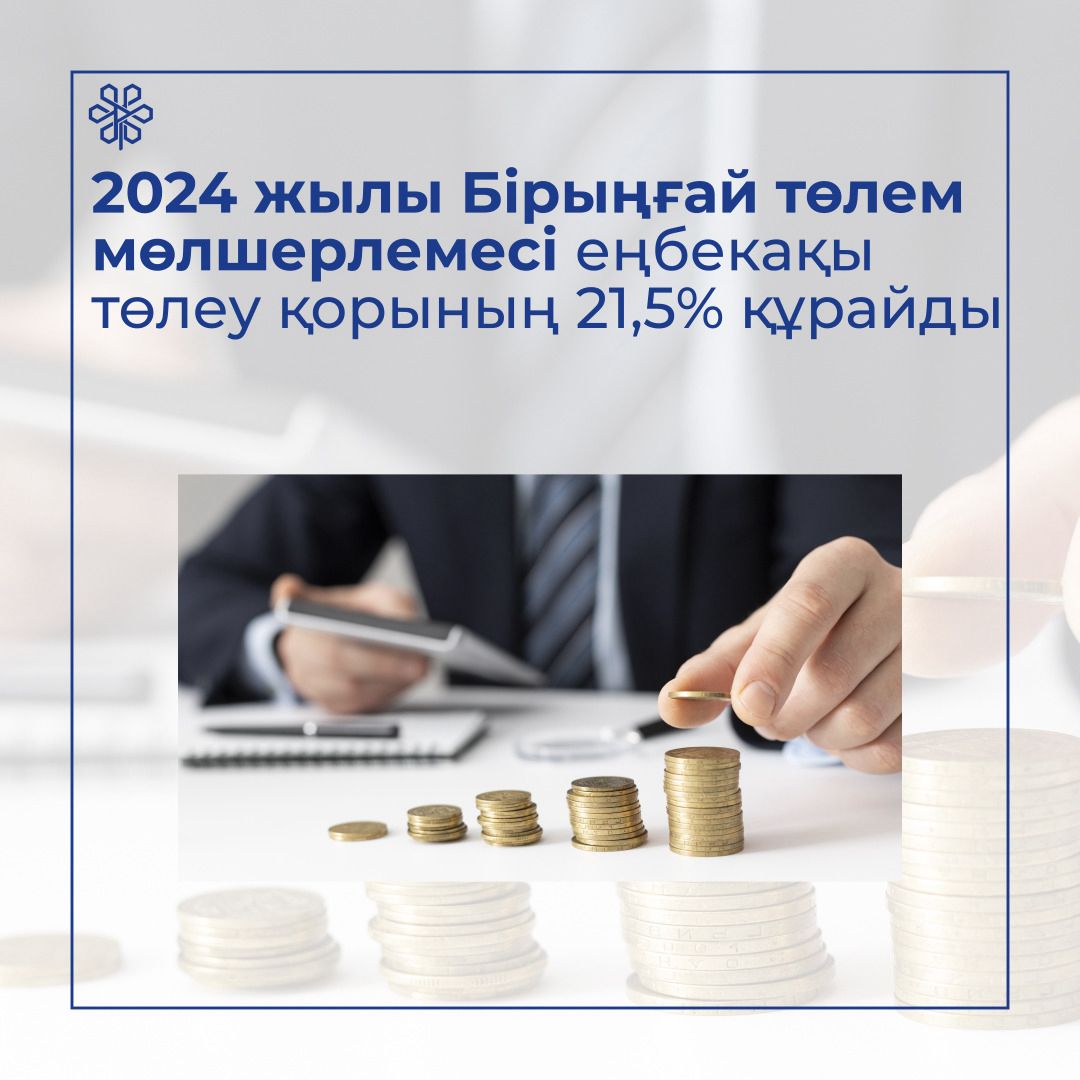 ↪️ 2024 жылы Бірыңғай төлем мөлшерлемесі еңбекақы төлеу қорының 21,5% құрайды.