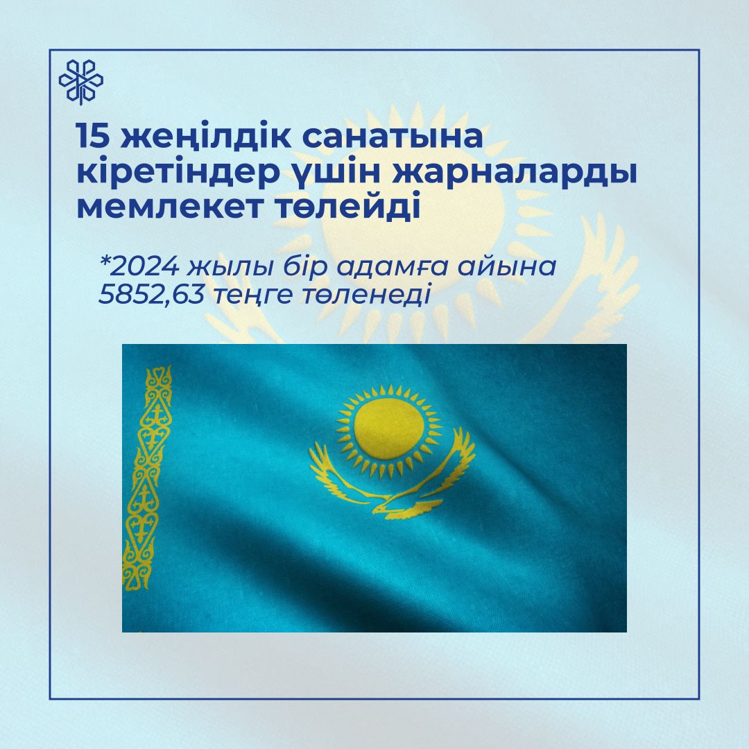 ↪️ 15 жеңілдік санатына кіретіндер үшін жарналарды мемлекет төлейді.