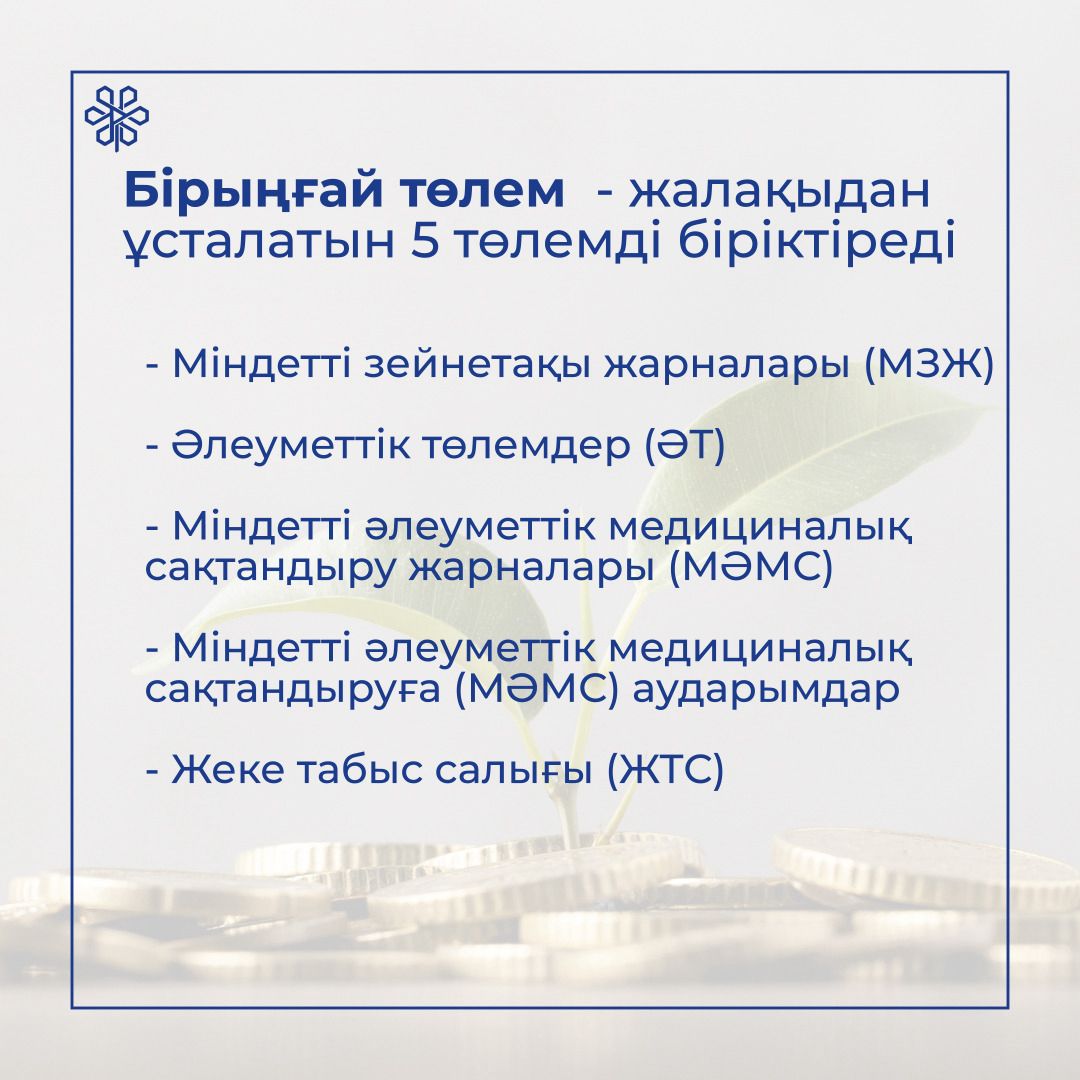 Бірыңғай төлем - жалақыдан ұсталатын 5 төлемді біріктіреді.