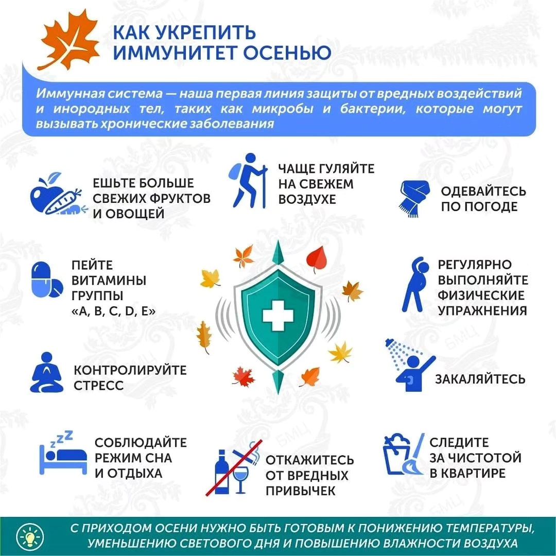 Сегодня мы делимся с вами краткой инфографикой о том, как укрепить свой иммунитет осенью.