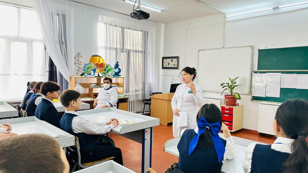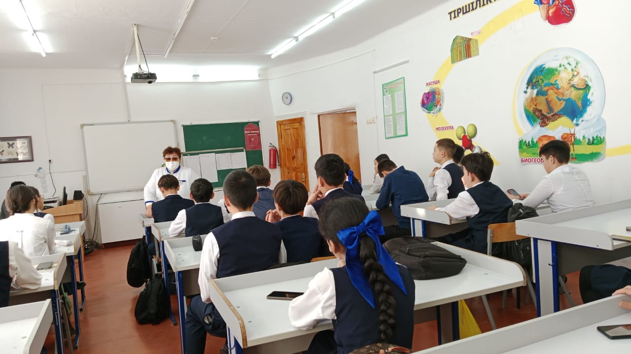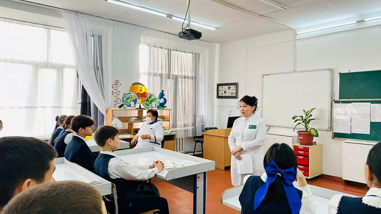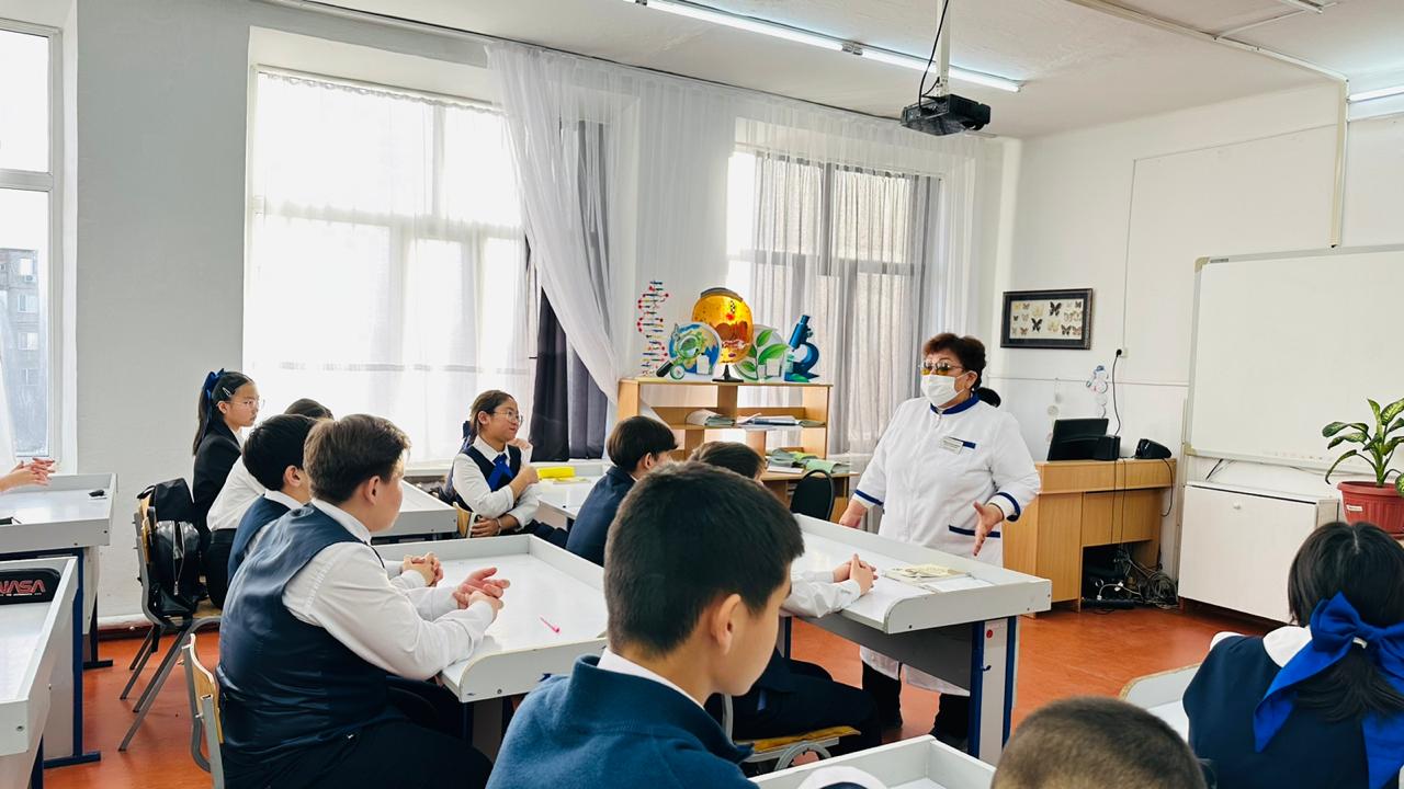 8 декабря 2023 года, врач-эпидемиолог Поликлиникики г. Сатпаев Абылкасымова К.А и фельдшер общей практики-Кенжегозина З.Т, провели для учащихся школа-лицей № 19 и школа гимназия №1 г.Сатпаев, семинар по теме «Профилактика кори».
